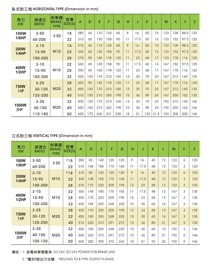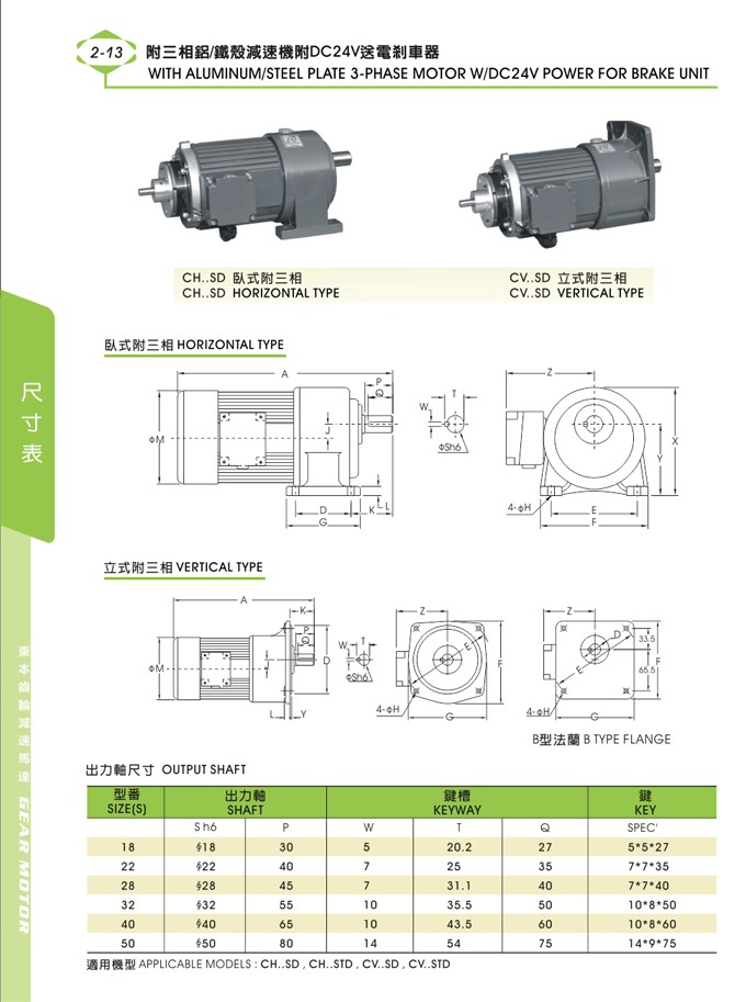 附三相铝铁殻减速机附DC24V送电刹车器 CV-SD立式附三相